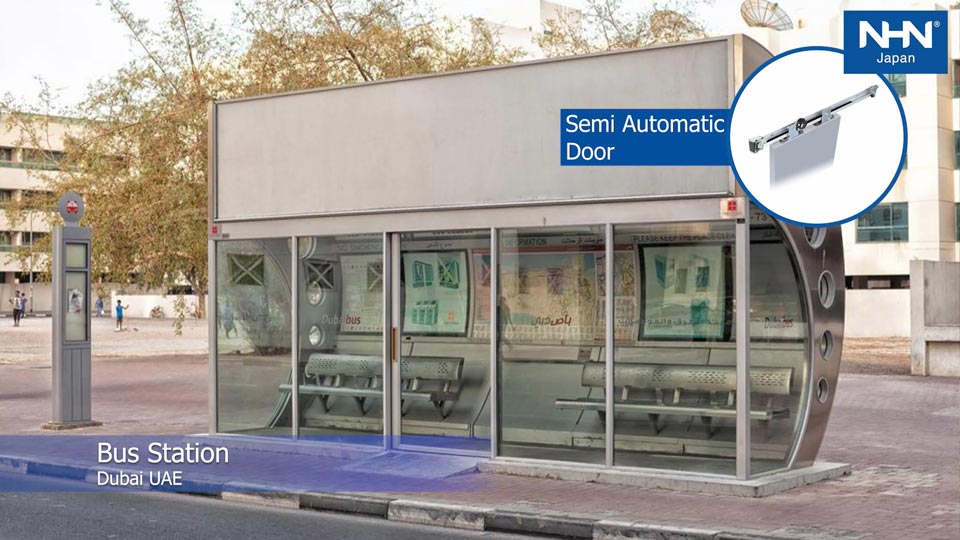This project features a semi-automatic sliding door system installed at a public bus station in Dubai. The NHN semi-automatic door solution ensures smooth operation, durability, and reliable performance in high-traffic public environments. The system provides controlled access while maintaining safety and efficiency for daily commuters.